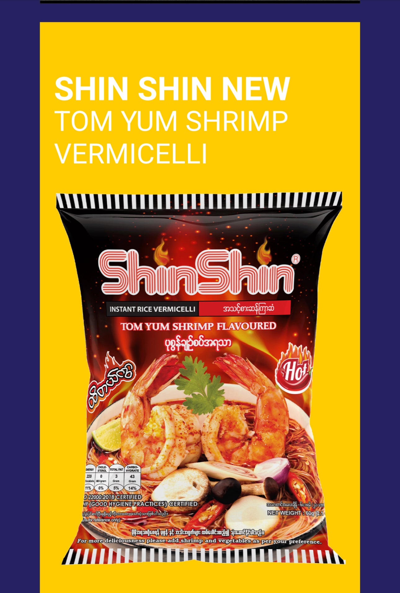 Shin Shin Instant Tom Yum Shrimp Flavor Rice Vermicelli ( ရှင်း ရှင်း အ သင့် စား ဆန် ကြာ ဇံ ပုဇွန် ချဉ် စပ် အ ရ သာ) 1 pk