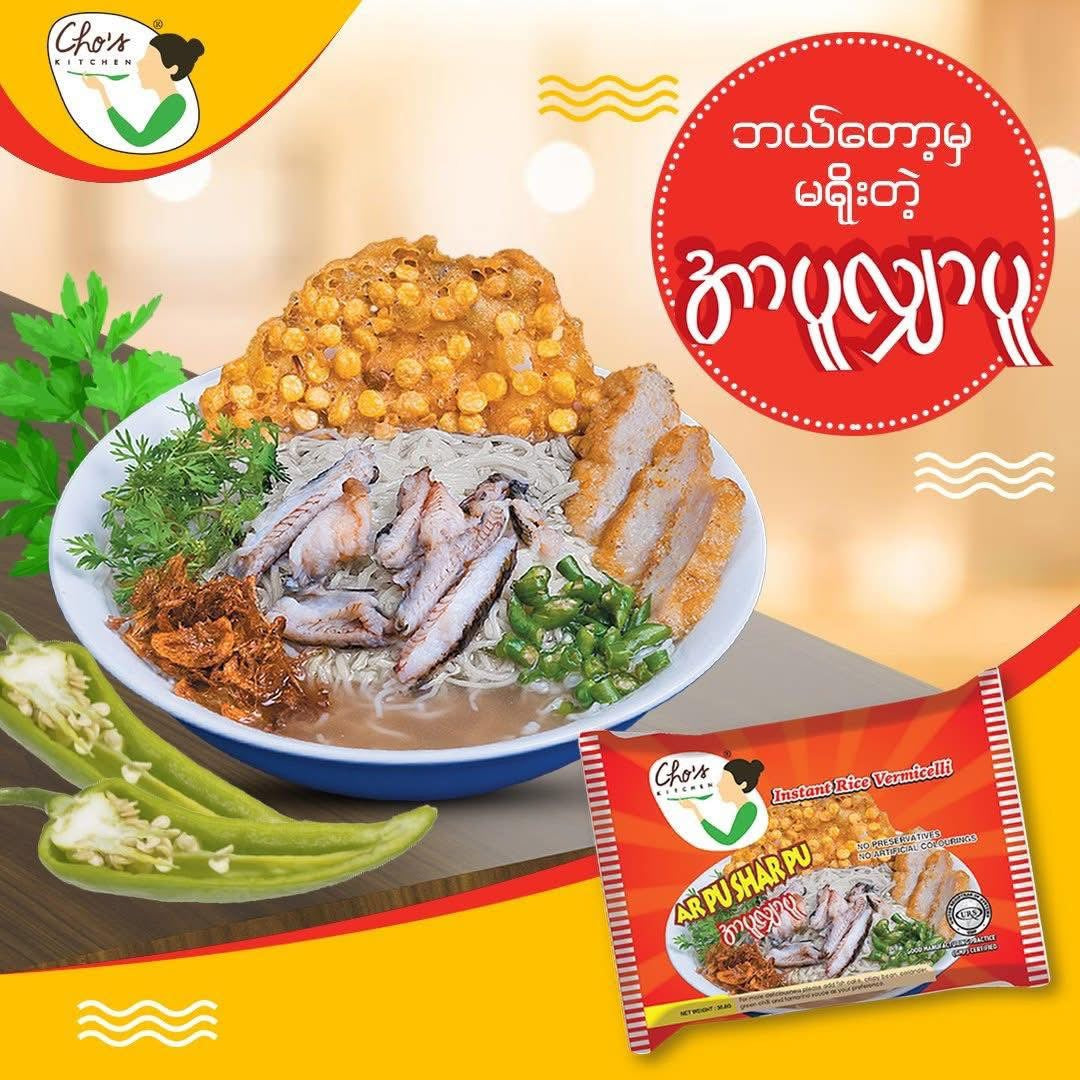Cho’s Ah Pu Shar Pu Instant Rice Vermicelli -(ချို အာ ပူ ရှာ ပူ အသင့် စား ဆန် ကြာ ဇံ - 5 ထုတ် တွဲ)