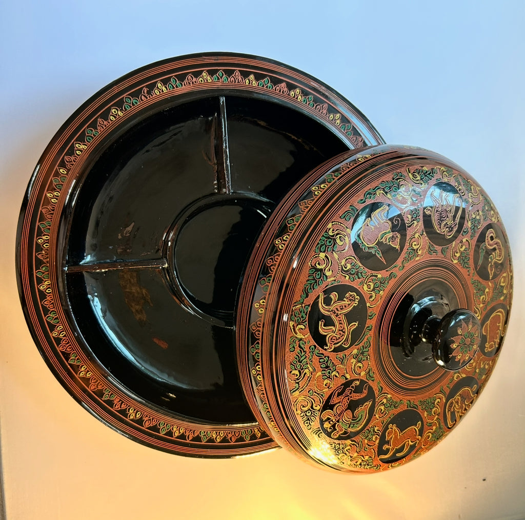 Traditional Burmese Lacquerware tray for tea leaves salad (မြန်မာ့ရိုးရာ ယွန်းလက်ဖက်အစ်)