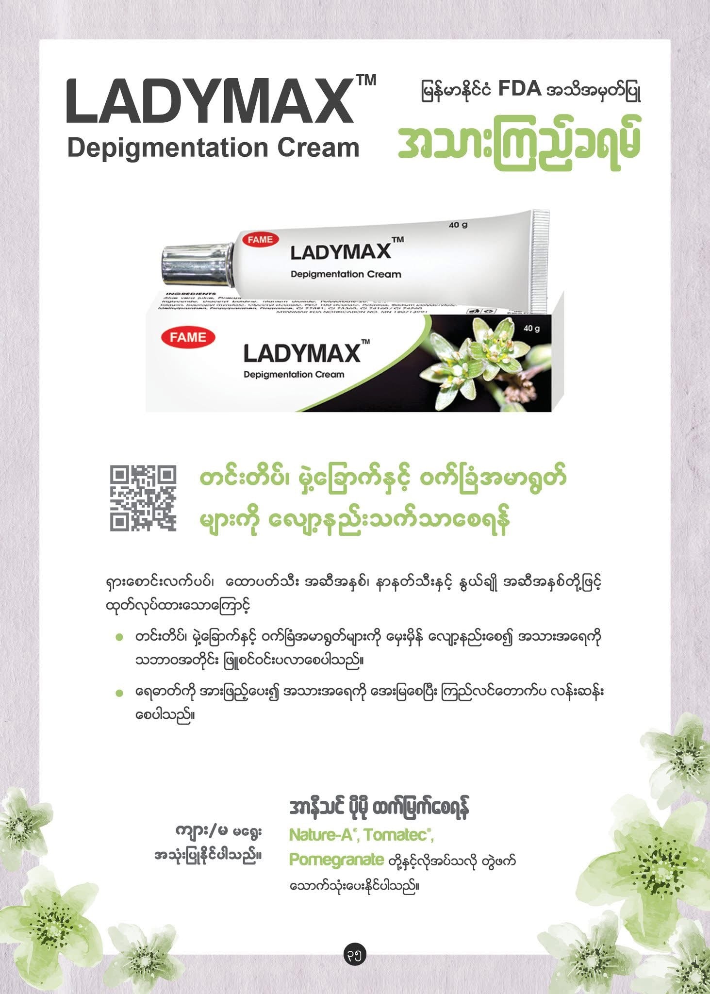 Fame Ladymax Depigmentation Cream (လှပျိုဖြူ အသားကြည်လိမ်း ဆေး)