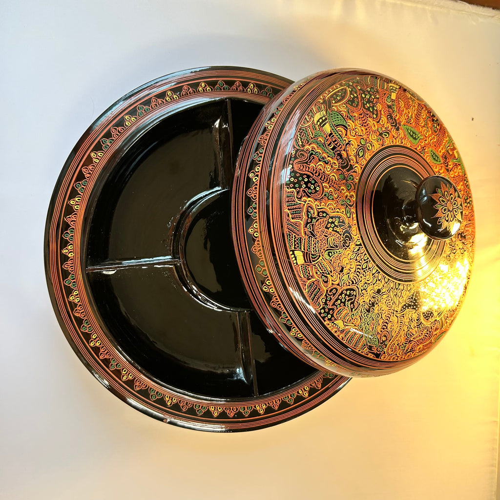 Traditional Burmese Lacquerware tray for Tea Leaves Salad (မြန်မာ့ရိုးရာ ယွန်းလက်ဖက်အစ်)