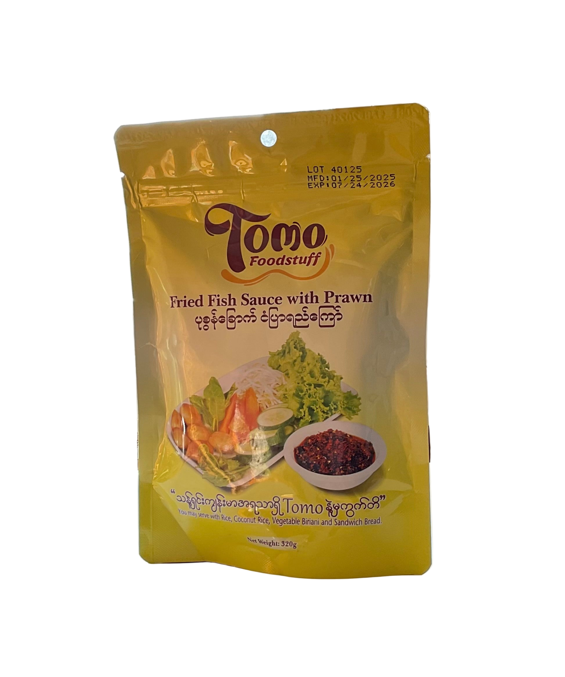 Tomo Fried Fish Sauce with Prawn) (ပုဇွန်ခြောက်ငံပြာရည်ကြော်) is backordered and will ship as soon as it is back in stock.
